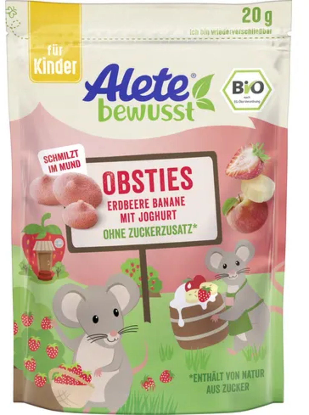 Alete bewusst Bio Obsties Erdbeere Banane mit Joghurt, 20 g