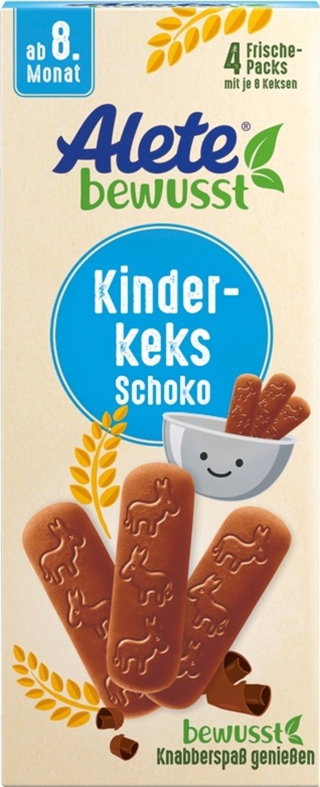 - Du kannst Alete Kinderkeks Schoko auch als Brei anbieten. Einfach 3 Kekse in einem Teller zerbröseln und mit ca. 3-4 Esslöffeln abgekochter Milch 3,5 % (ca. 30 ml) übergießen. Kurz quellen lassen – fertig ist der Brei.