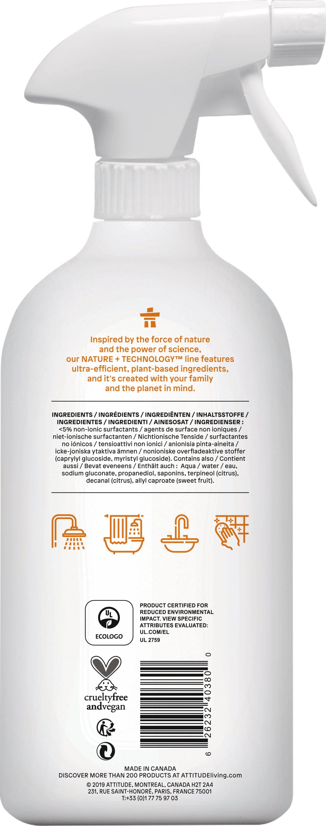 ATTITUDE Reiniger für Dusche & Bad, 800 ml