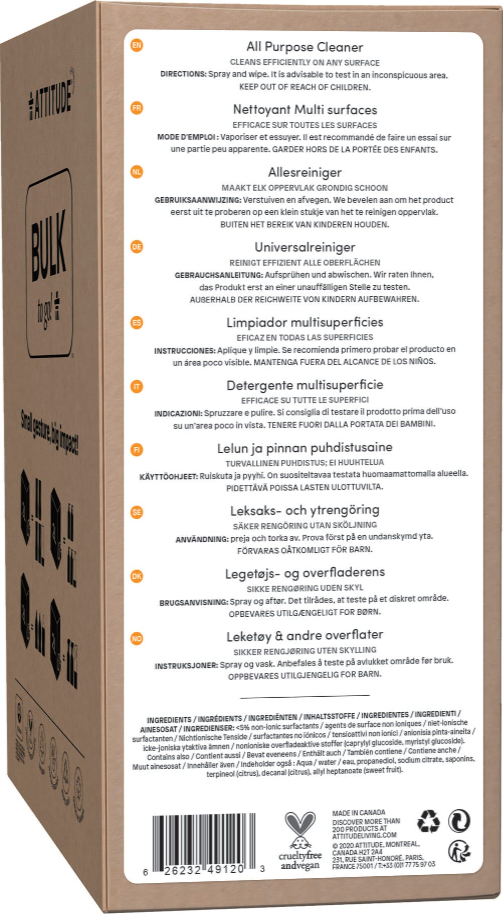 Der Universalreiniger von ATTITUDE reinigt auf Basis von natürlichen Inhaltsstoffen Oberflächen im gesamten Haushalt.
