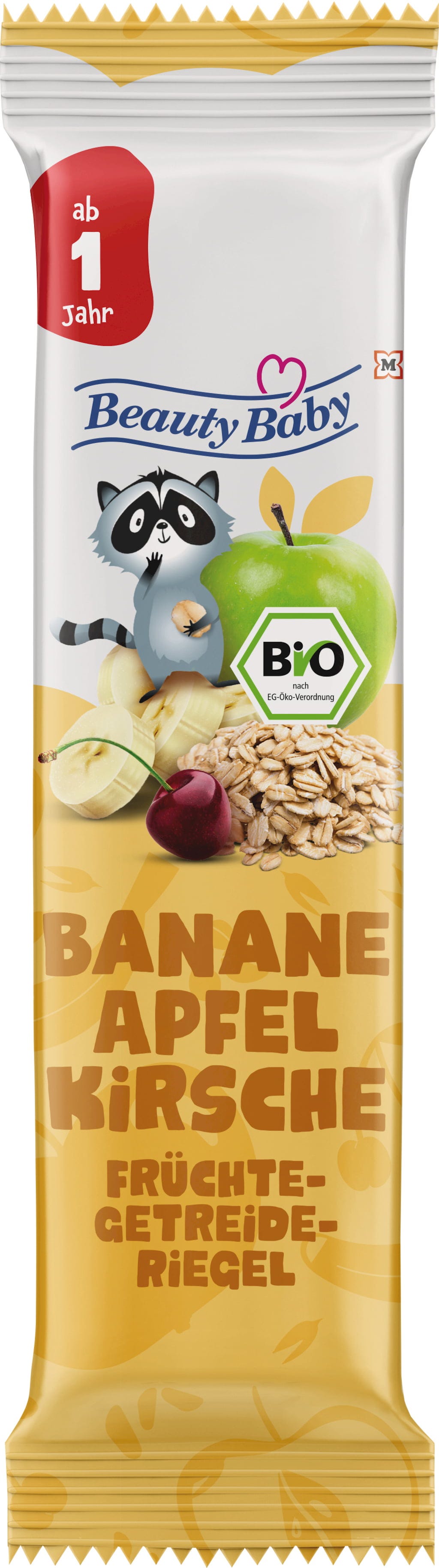 Dieser köstliche Snack kombiniert den fruchtigen Geschmack von Apfel, Banane und Kirschen mit hochwertigem Getreide. So ist er eine sättigende und schmackhafte Zwischenmahlzeit, die auf die Bedürfnisse von Kleinkindern abgestimmt ist.