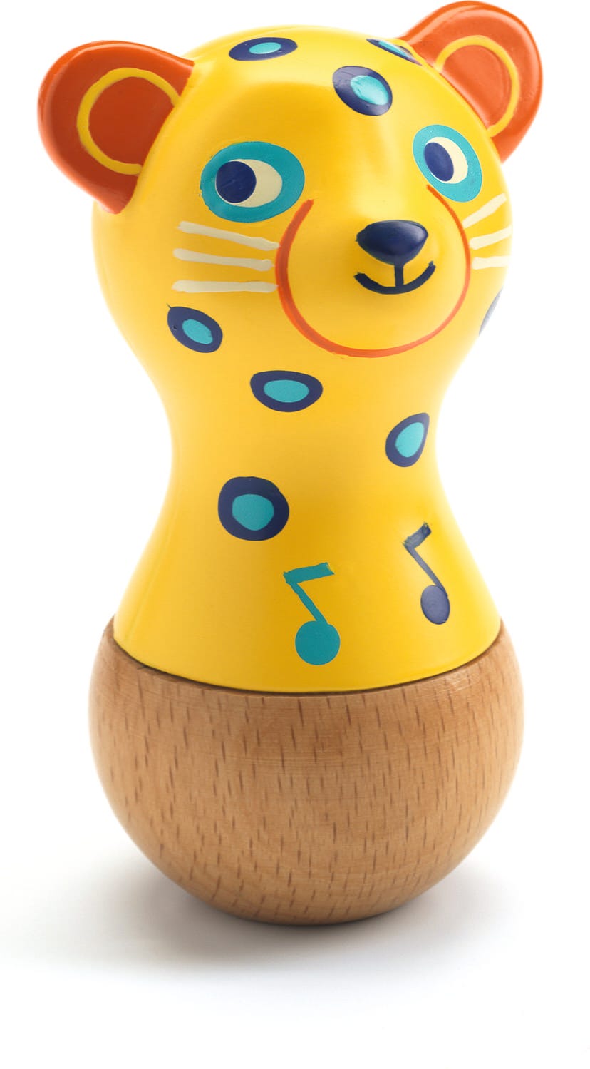 Klein, bunt, handlich und musikalisch ist dieser niedliche Jaguar. Die Rassel besteht aus Holz und Kunststoff, besitzt die ideale Größe für Kinderhände und begeistert den Nachwuchs schon früh fürs Musizieren.