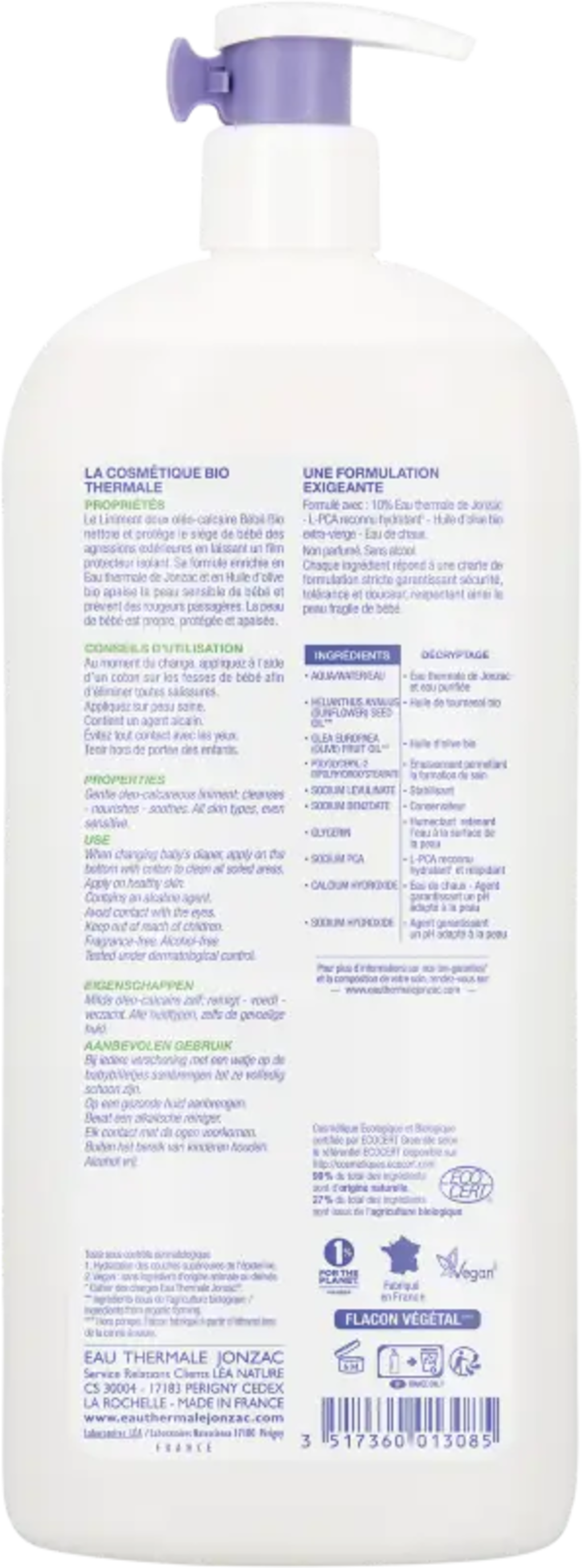 Eau Thermale JONZAC BébéBio Gentle Oleo-Calcareous Liniment, 1 l