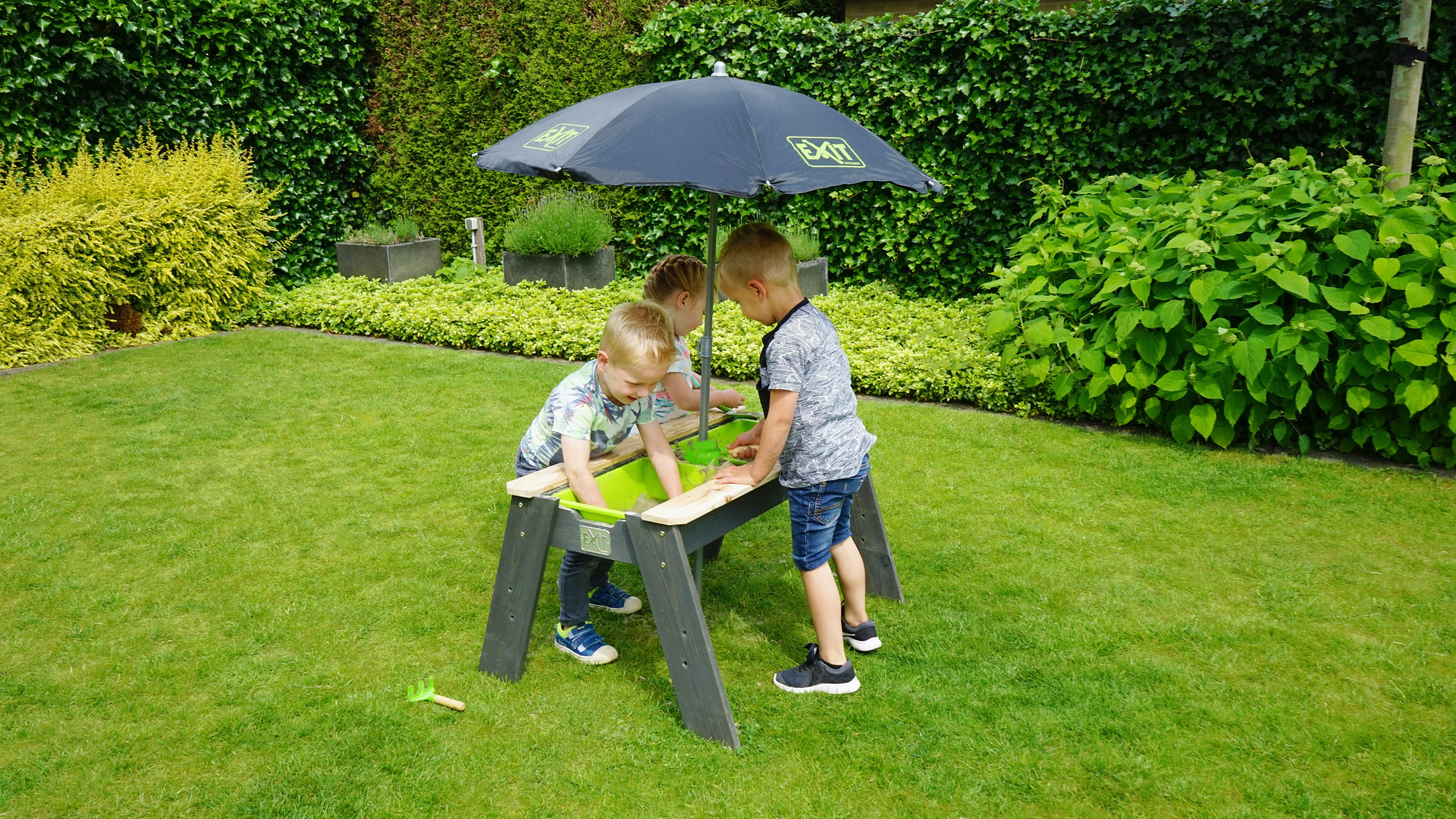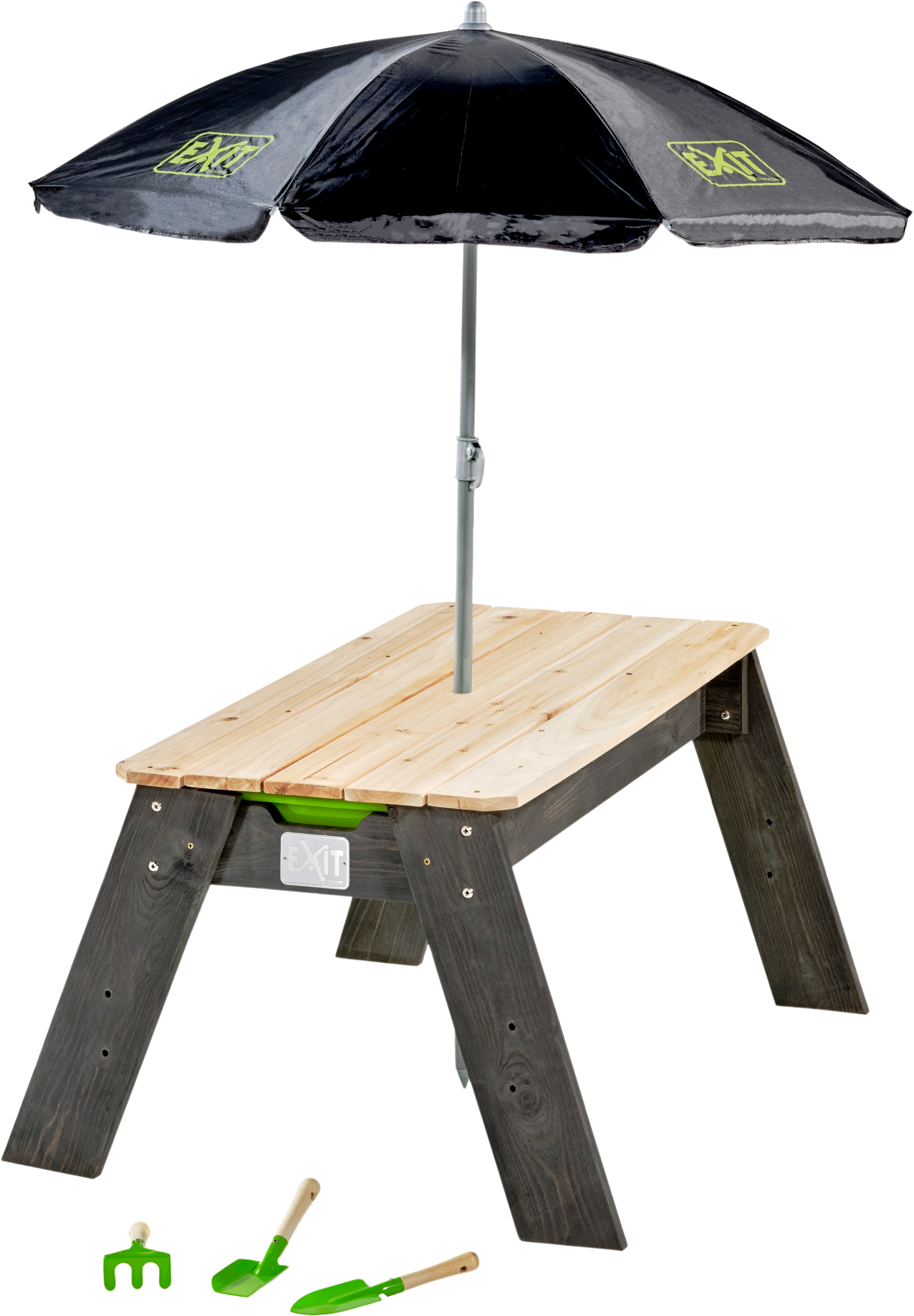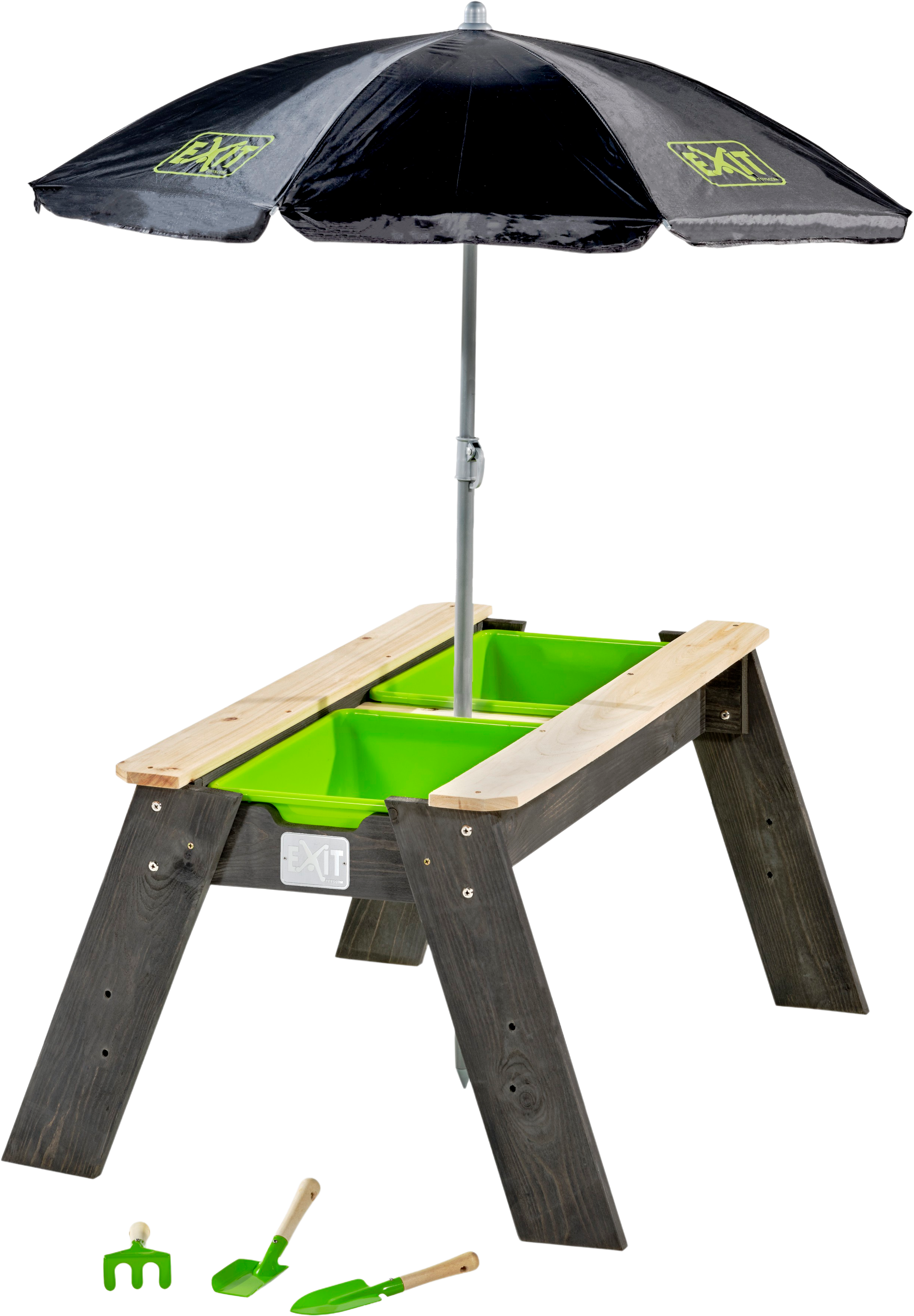 Exit Toys Aksent Sand- & Wassertisch mit Sonnenschirm & Gartenwerkzeugen