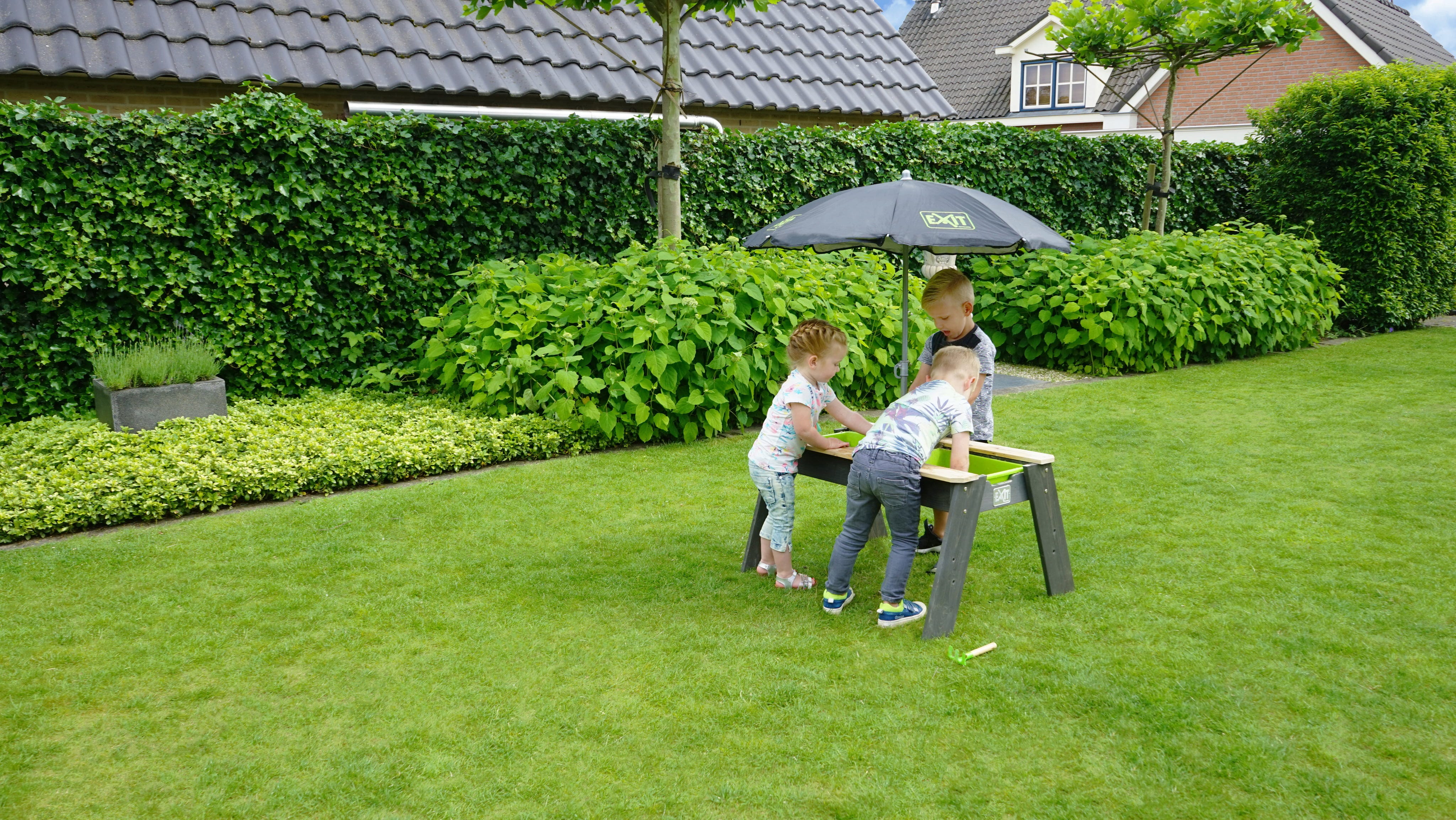 Der Aksent Sand- & Wassertisch von Exit Toys bildet einen echten Allrounder für sommerlichen Gartenspaß!
