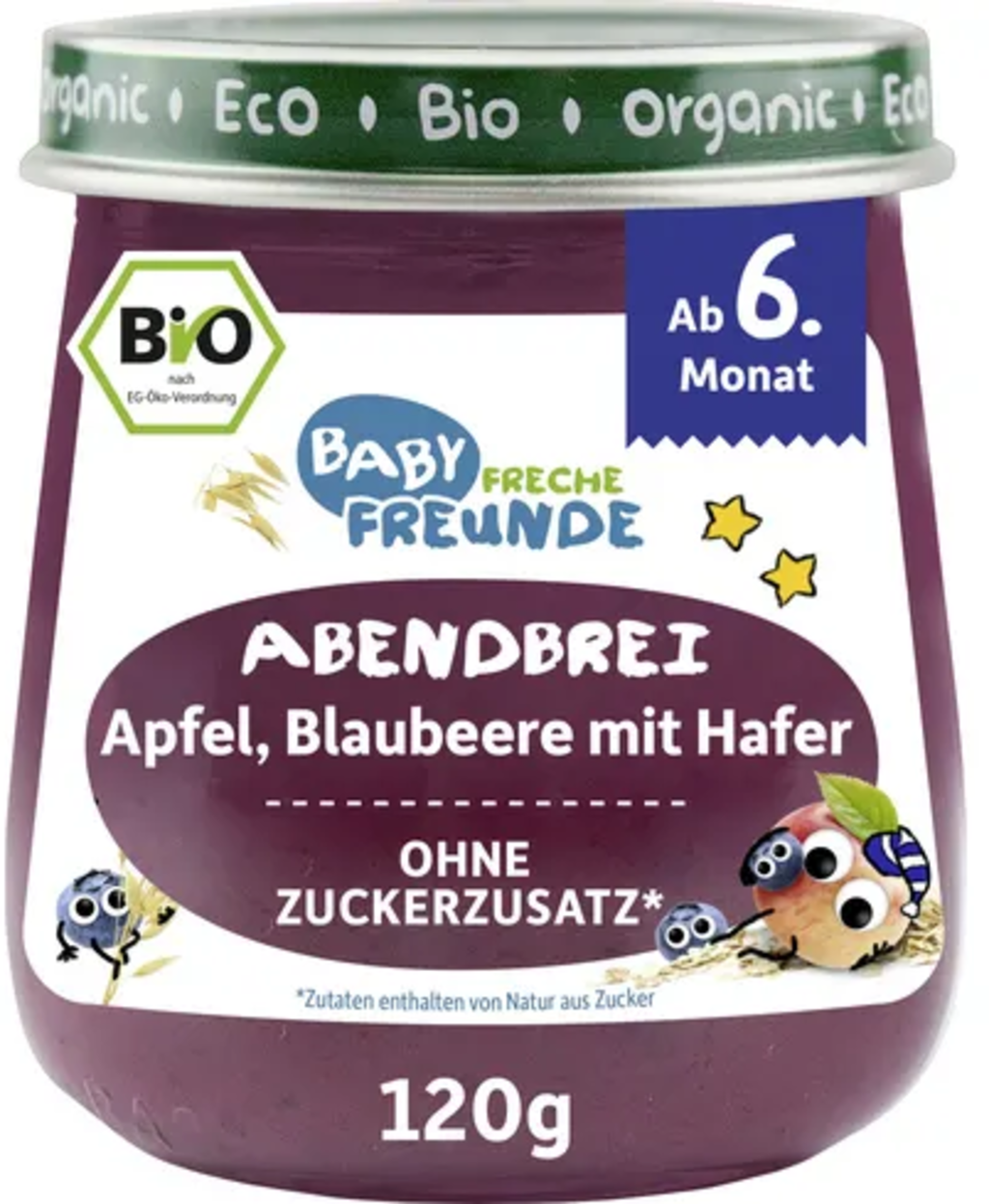 Erfahrungsberichte in Deutsch für Freche Freunde Bio Gläschen Abendbrei Apfel, Blaubeere mit Hafer
