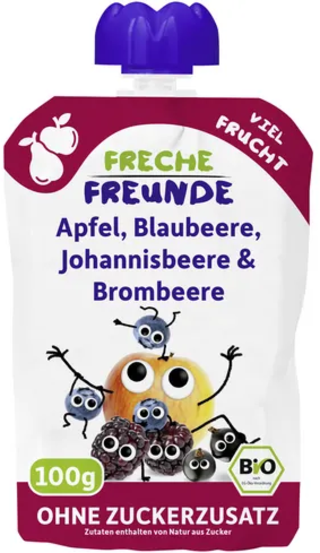 Freche Freunde Bio Quetschie Apfel, Blaubeere, Johannisbeere & Brombeere, 100 g