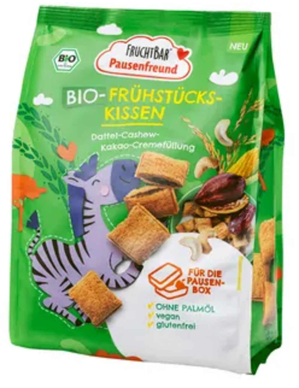 FruchtBar Bio 'Pausenfreund' Frühstücks-Kissen Dattel-Cashew-Kakao-Cremefüllung, 180 g 3,89 € (21,61 € / kg)