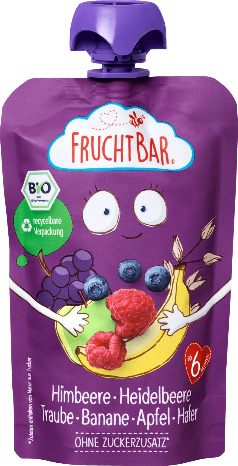 FruchtBar Bio Quetschie Himbeere-Heidelbeere-Traube-Banane-Apfel-Hafer, 100 g