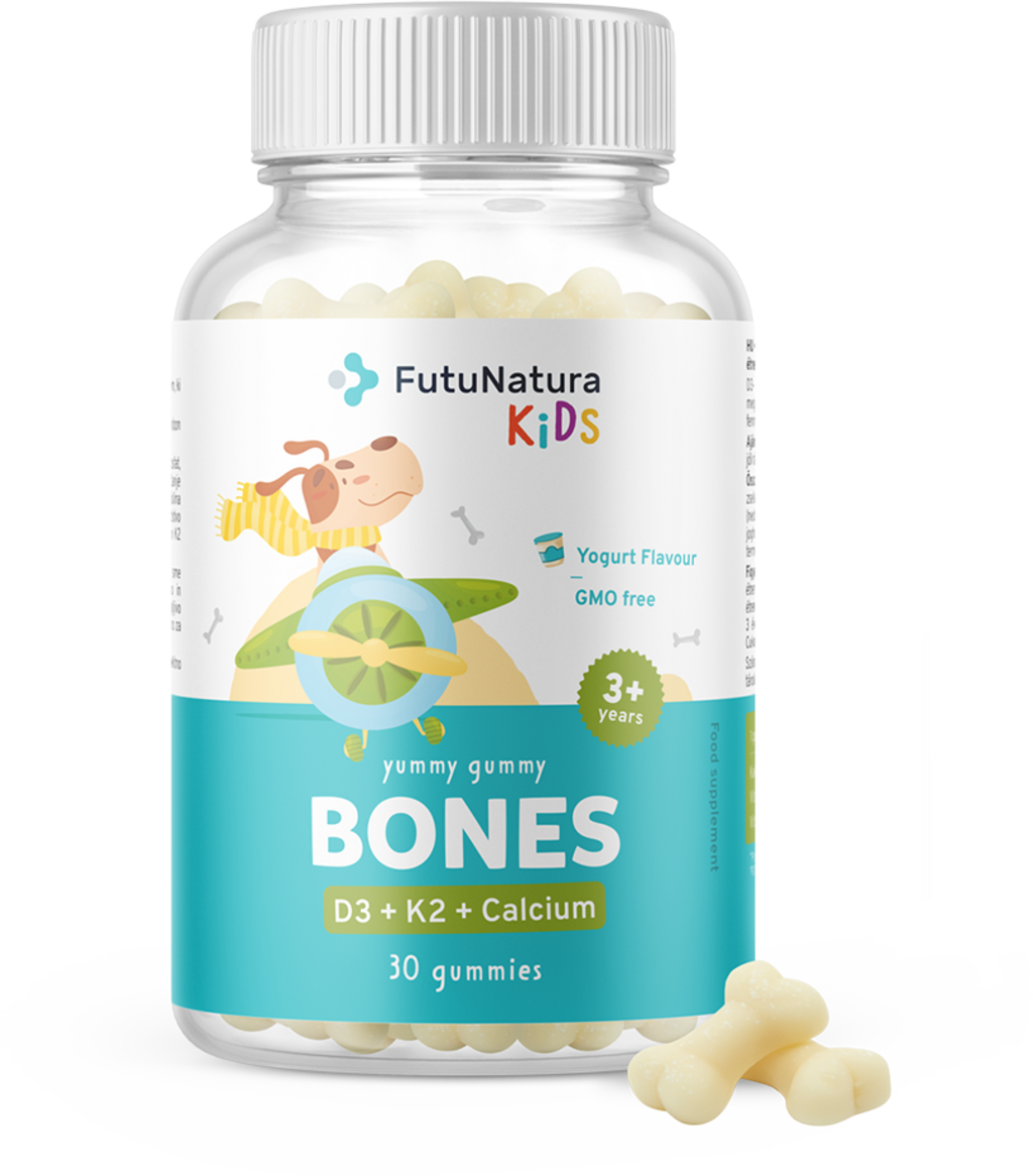 Die BONES – Gummis von FutuNatura wurden speziell für Kinder entwickelt und bieten eine Kombination aus Calcium und den Vitaminen D3 und K2. Dieses Nahrungsergänzungsmittel ist darauf ausgelegt, die tägliche Nährstoffzufuhr deines Kindes zu ergänzen.