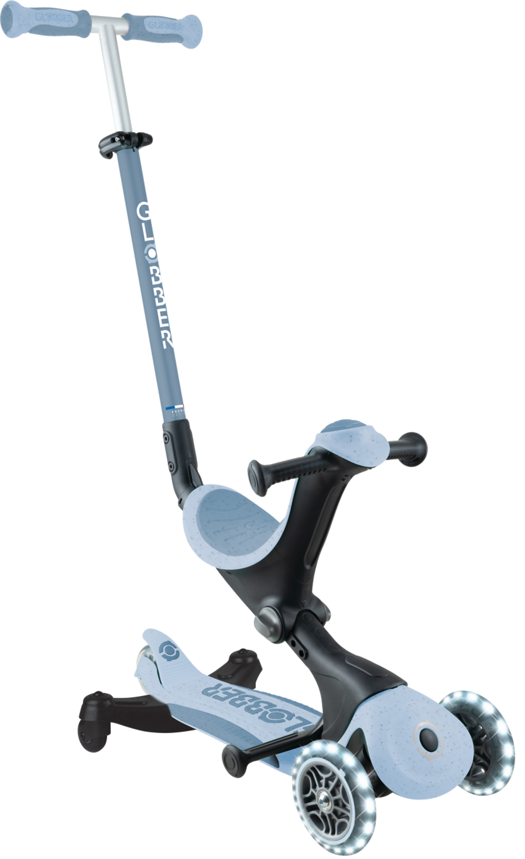 Der GO-UP DELUXE LIGHTS ECOLOGIC 360° ist das perfekte 3-in-1-Fahrzeug für kleine Entdecker – vom ersten Aufsitzfahrzeug über Laufrad bis hin zum klassischen Scooter. Dank patentierter 360°-Elternlenkung und werkzeuglosem Umbau lässt sich das Fahrzeug flexibel an das Entwicklungsstadium deines Kindes anpassen.