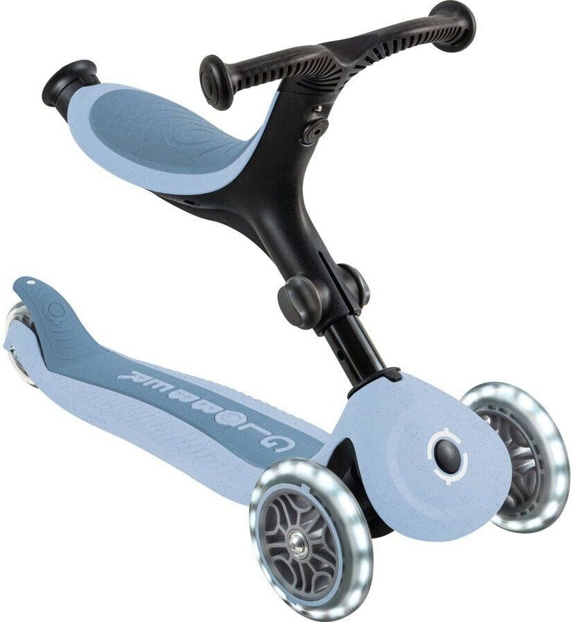 Der Go-Up Active Lights Eco vereint Umweltfreundlichkeit mit Funktionalität. Eltern erhalten ein langlebiges 3-in-1-Modell, das vom Sitzroller zum Scooter wächst – ideal für viele Jahre.