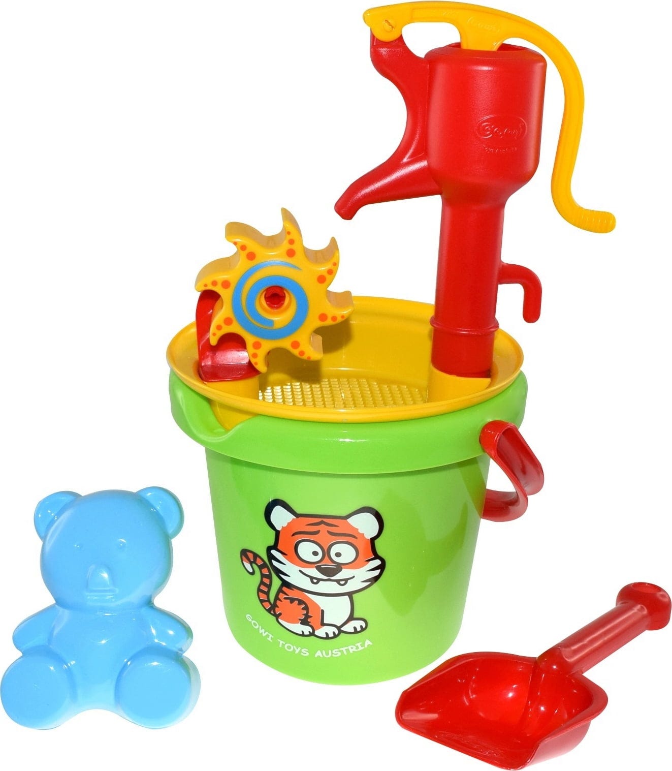 Inhalt: Eimer, Pumpe, Sieb, Sandform, Schaufel