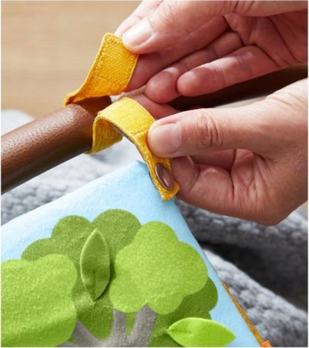 Dieses niedliche Stoffbuch fühlt sich für die Kleinen nicht nur toll an, es hat auch einen idealen Lerneffekt. Du kannst das Buch kinderleicht an deinem Kinderwagen oder am Gitterbett befestigen und die Kleinen darin blättern lassen.