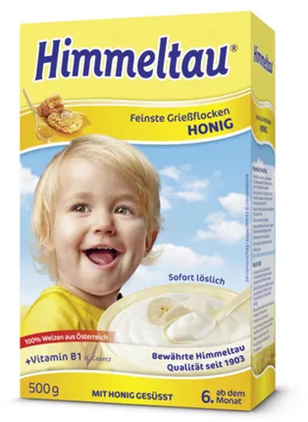 Die feinen Grießflocken von Himmeltau eignen sich für Kinder ab dem 6. Lebensmonat. Ihre Rezeptur enthält keinen Kristallzucker und ist nur mit Honig gesüßt. Zusätzlich enthält die Rezeptur wertvolles Vitamin B1. Die Grießflocken können sowohl als Brei als auch als Flaschennahrung zubereitet werden.