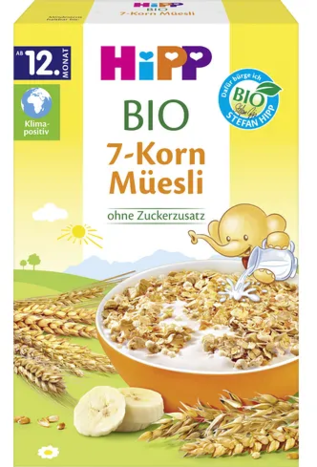 Das HiPP Bio 7-Korn Müesli ist mit seinem hochwertigen Bio-Vollkorngetreide euer optimaler Begleiter für einen guten Start in den Tag. Die vegane Rezeptur enthält weder Aroma- noch Zuckerzusätze und ist mit Vitamin B1 angereichert. Geeignet für Kinder ab dem 12. Lebensmonat.