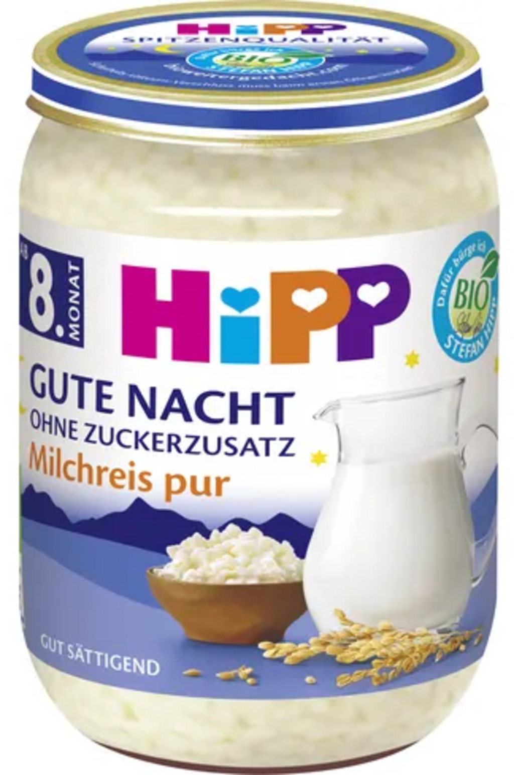Der HiPP Gute Nacht Milchreis pur ist eine leckere Abendmahlzeit für Babys ab 8 Monaten. Dem Milchreis ist kein Zucker zugesetzt, er ist glutenfrei und enthält wichtige Vitamine und Calcium.