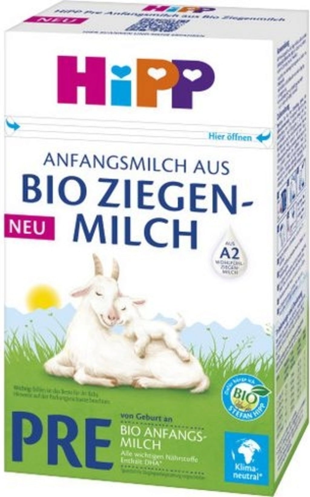 HiPP Bio Säuglingsanfangsnahrung auf Ziegenmilchbasis PRE begleitet Babys bereits ab der Geburt. Milde Bio-Zutaten wie A2 Wohlfühl-Ziegenmilch schonen das Bäuchlein und enthalten wichtige Nährstoffe: Das Produkt enthält neben DHA, das ist ein Vertreter aus der Omega-3-Fettsäuren-Familie und muss gesetzlich vorgeschrieben ein Bestandteil für Säuglingsnahrung sein, auch wertvolle Ballaststoffe aus GOS (Galactooligosaccharide), gewonnen aus Bio-Lactose.