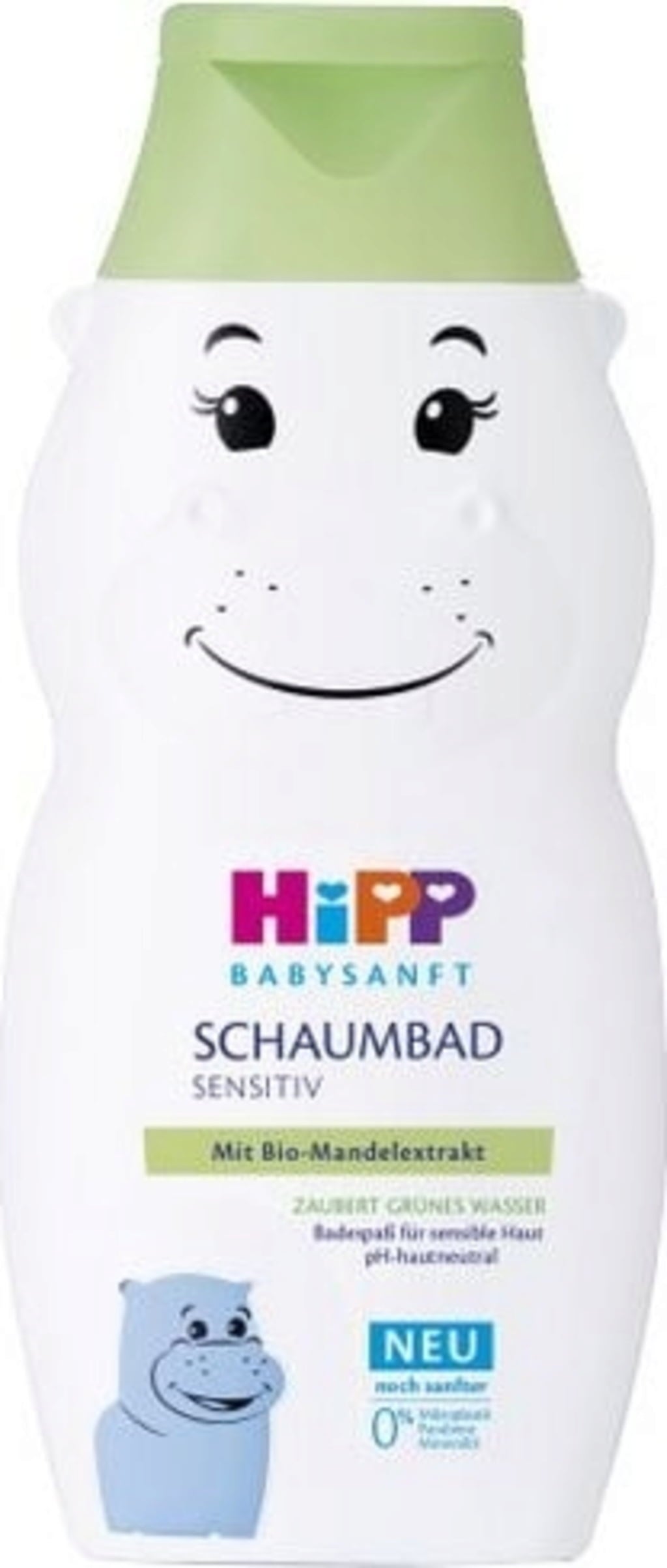 Mit dem HiPP Babysanft Schaumbad Sensitiv macht das Baden garantiert riesig Spaß. Der Badeschaum färbt das Wasser grün und sorgt so für großes Staunen bei Kindern. Da es sich hierbei um Lebensmittelfarbe handelt, färbt der Schaum weder Haut noch Haare oder Badewanne.
