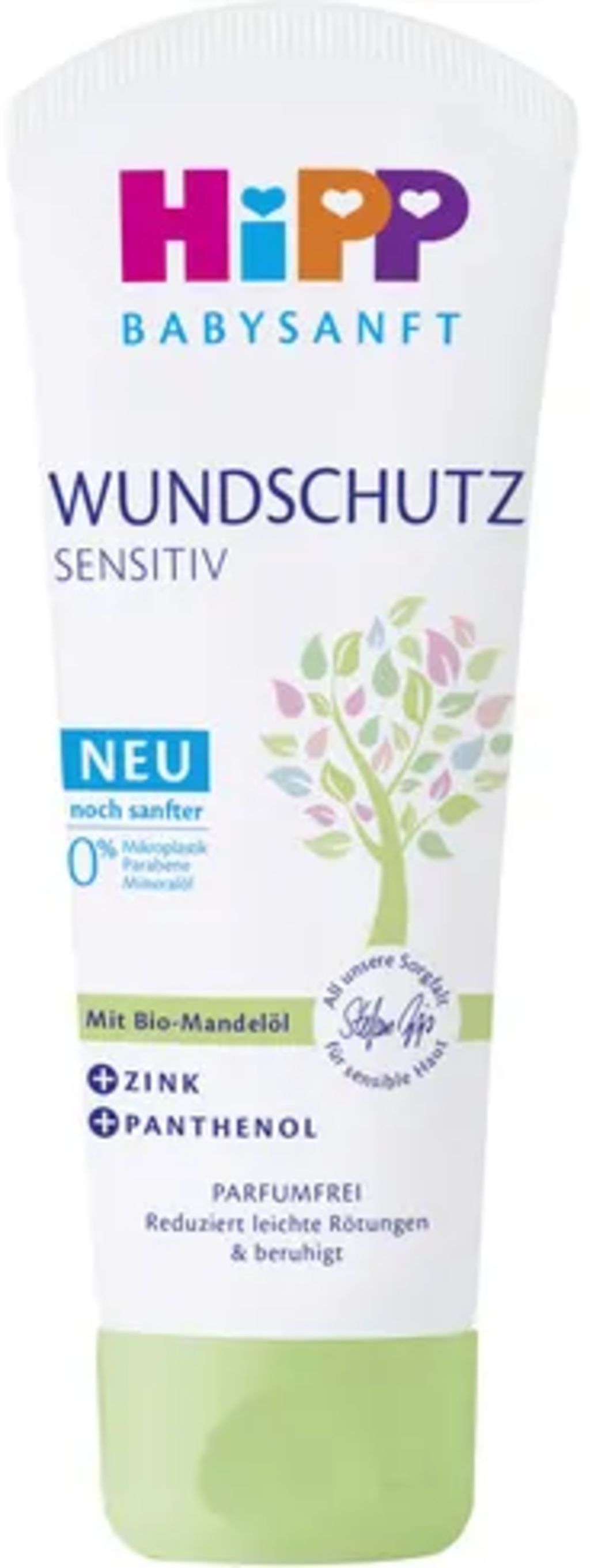 Die Babysanft Wundschutz Sensitiv Creme von HiPP kann zur täglichen Pflege im Windelbereich verwendet werden. Die Formel mit Bio-Mandelöl, Zink und Panthenol pflegt die sensible Haut deines Babys, ohne Parfum, Parabene oder Mineralöle. Verwendbar ist die Creme bereits ab dem 1. Lebenstag deines Kindes.