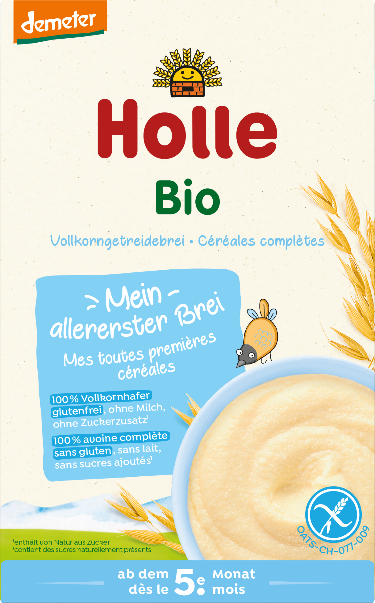 Mein allererster Brei von Holle darf als Beikost den Speiseplan deines Kindes täglich ergänzen. Er wird aus hochwertigem Hafervollkornmehl aus biodynamischer Landwirtschaft mit Demeter-Zertifizierung hergestellt. Die Rezeptur verzichtet auf Zuckerzusätze und ist gluten- sowie milchfrei. Der Brei darf Säuglinge bereits ab dem 5. Monat begleiten.