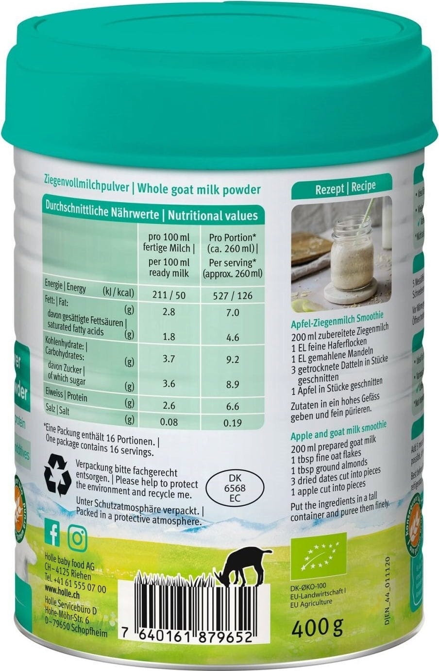 Holle Bio Ziegen-Vollmilchpulver - für die ganze Familie, 400 g