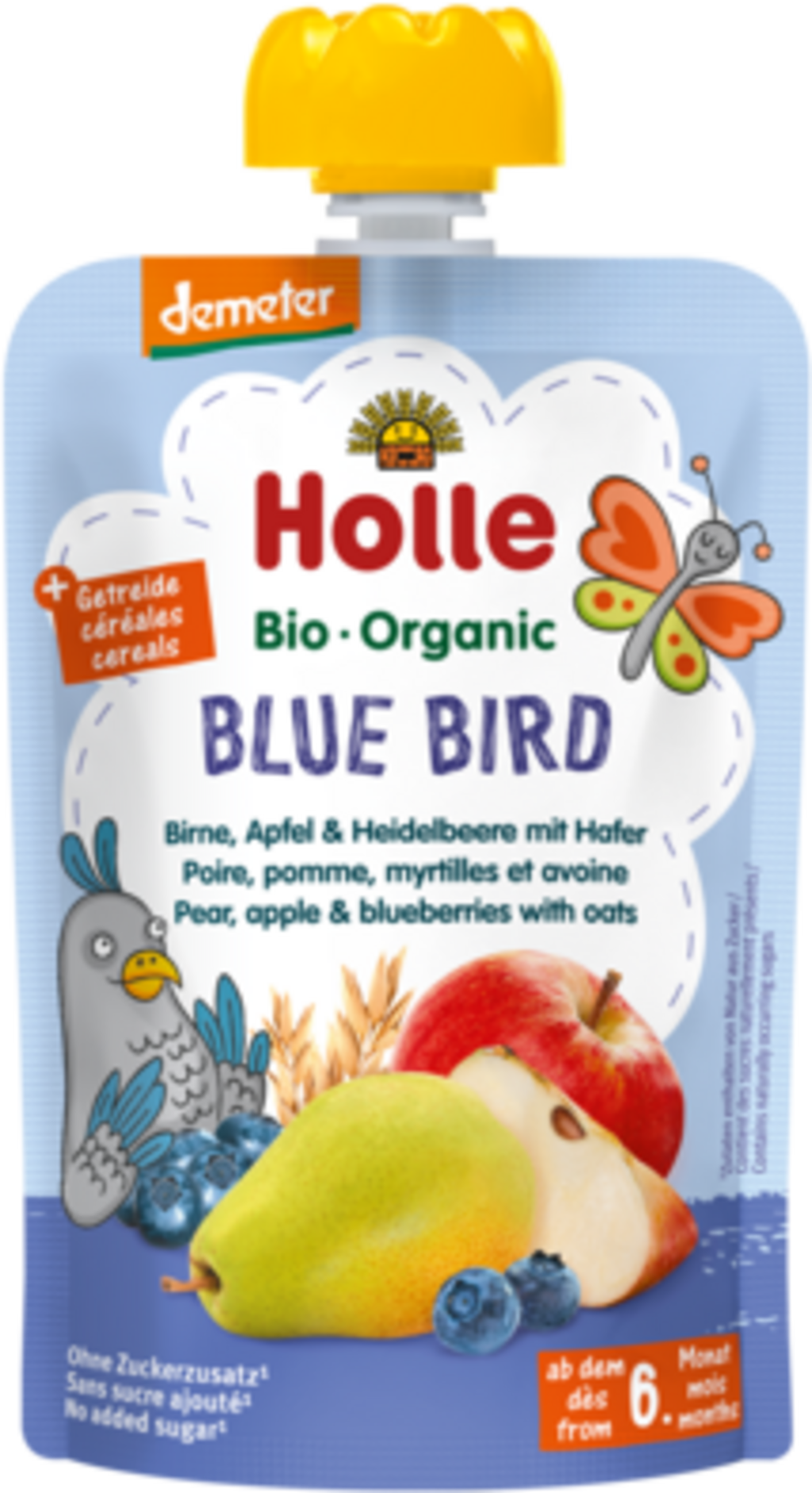 Birnen, Äpfel, Heidelbeeren und Hafer machen das Blue Bird Fruchtpüree von Holle zu einer leckeren Zwischenmahlzeit, die garantiert allen Obsttigern schmeckt. Im wiederverschließbaren Quetschbeutel – daher auch praktisch für unterwegs.