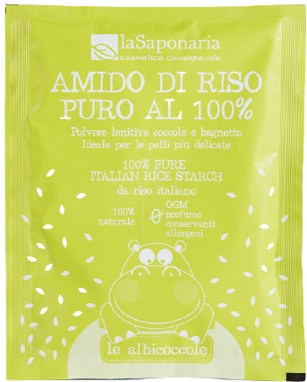 Diese natürliche Reisstärke, zu 100% aus italienischem Reis hergestellt, pflegt die empfindliche Babyhaut besonders zart. Es ist frei von Parfum, Allergenen sowie Duftstoffen und besitzt einen sanften Reinigungs-Effekt, sodass es auch als Badezusatz bestens geeignet ist.