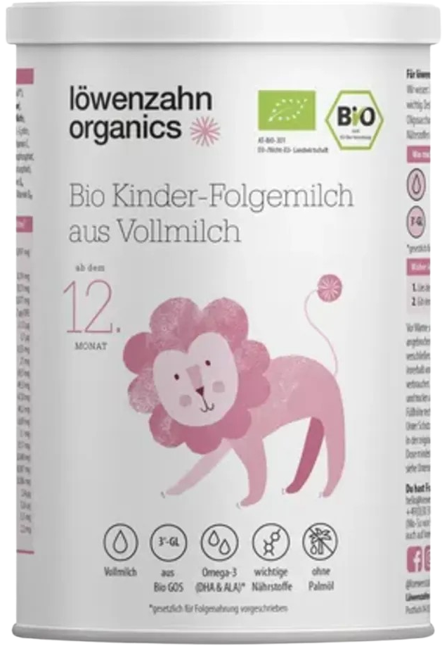 Die Bio Kinder-Folgemilch aus Vollmilch ist für Kleinkinder ab dem 12. Monat geeignet und kann im Anschluss an die löwenzahn organics Bio Folgemilch 6+ und jeder anderen Folgenahrung gefüttert werden. Ideal als Milchgetränk zum Frühstück, Abendessen, ins Müsli oder zwischendurch. Mehr wichtige Informationen kannst du dem Reiter 'Wichtige Hinweise zur Verwendung' weiter unten entnehmen.