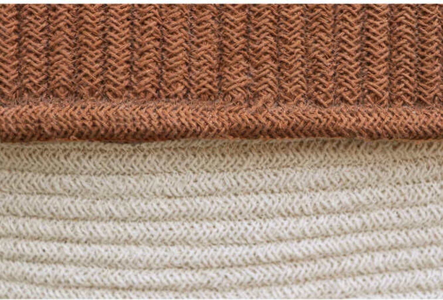 Sie bestehen aus dicken, geflochtenen Baumwollkordeln, die in traditioneller Handarbeit zu den pfiffigen Körben verarbeitet werden, dabei wird auch auf kleine Details wie die Fenster und das hübsche Giebeldach geachtet, während für die gedeckten Farben ausschließlich natürliche Farbstoffe verwendet werden. Durch die dreieckige Öffnung können Spielsachen, Andenken und Bastelutensilien in den Korb gelegt werden, wo sie sicher verstaut sind.