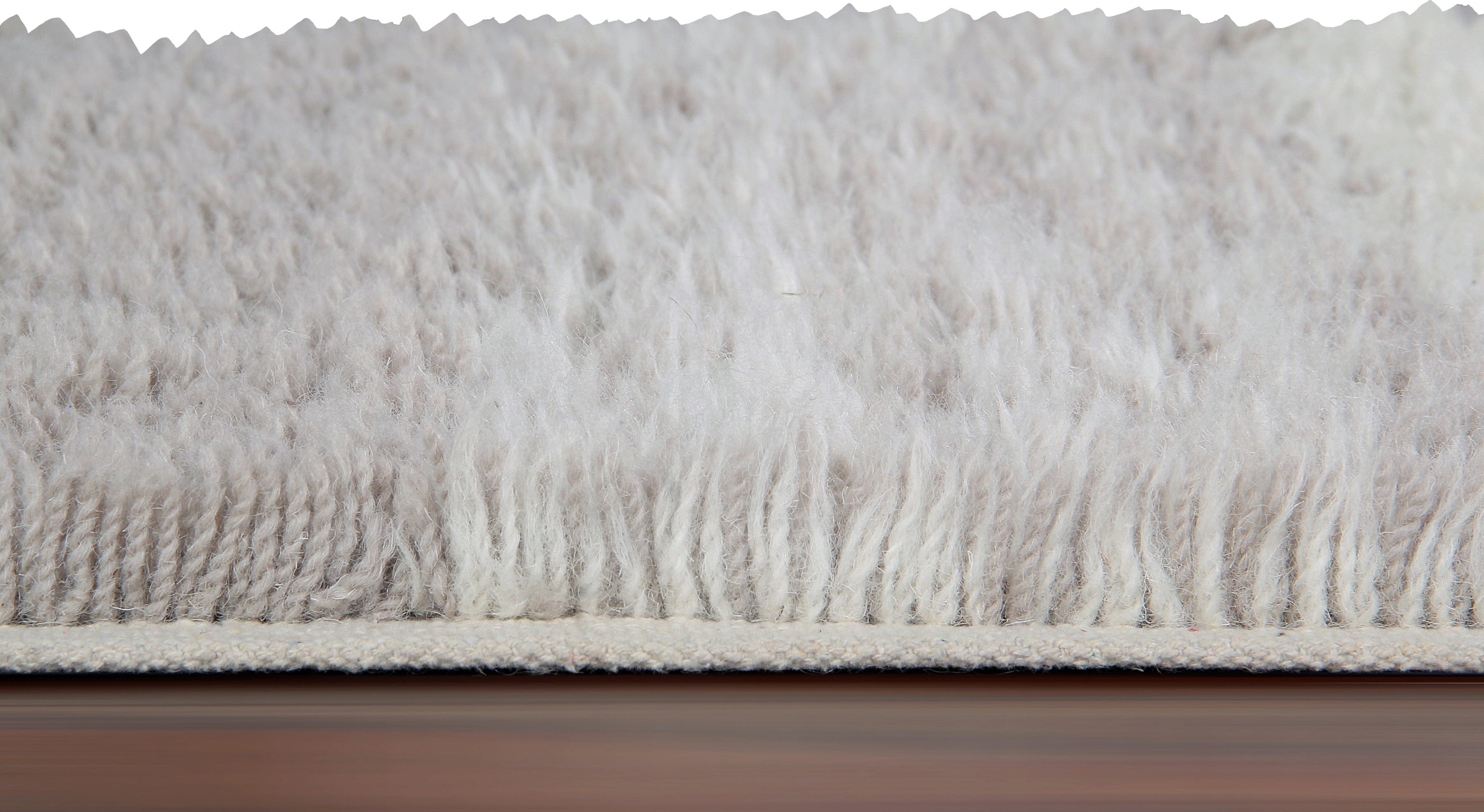 Der von Hand geknüpfte Teppich aus reiner, weicher Wolle sorgt mit seinem dezent-zurückhaltenden Design in wunderbar soften Farbtönen für behagliche Gemütlichkeit. Die kunstvoll über kreuz geknüpften Fransen an den Rändern verleihen ihm ein attraktives & dekoratives Finish. Ein stilvoller Eyecatcher in modern-puristischem Look, der sich in allen Wohnräumen zuhause fühlt.