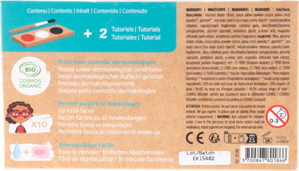 Mit den drei Farben Rot, Weiß sowie Schwarz haben die Kleinen Spaß und können in Piraten oder Marienkäfer verwandelt werden. Ganz ohne schädliche Inhaltsstoffe. Außerdem lässt sich die Schminke ganz einfach wieder abwaschen.