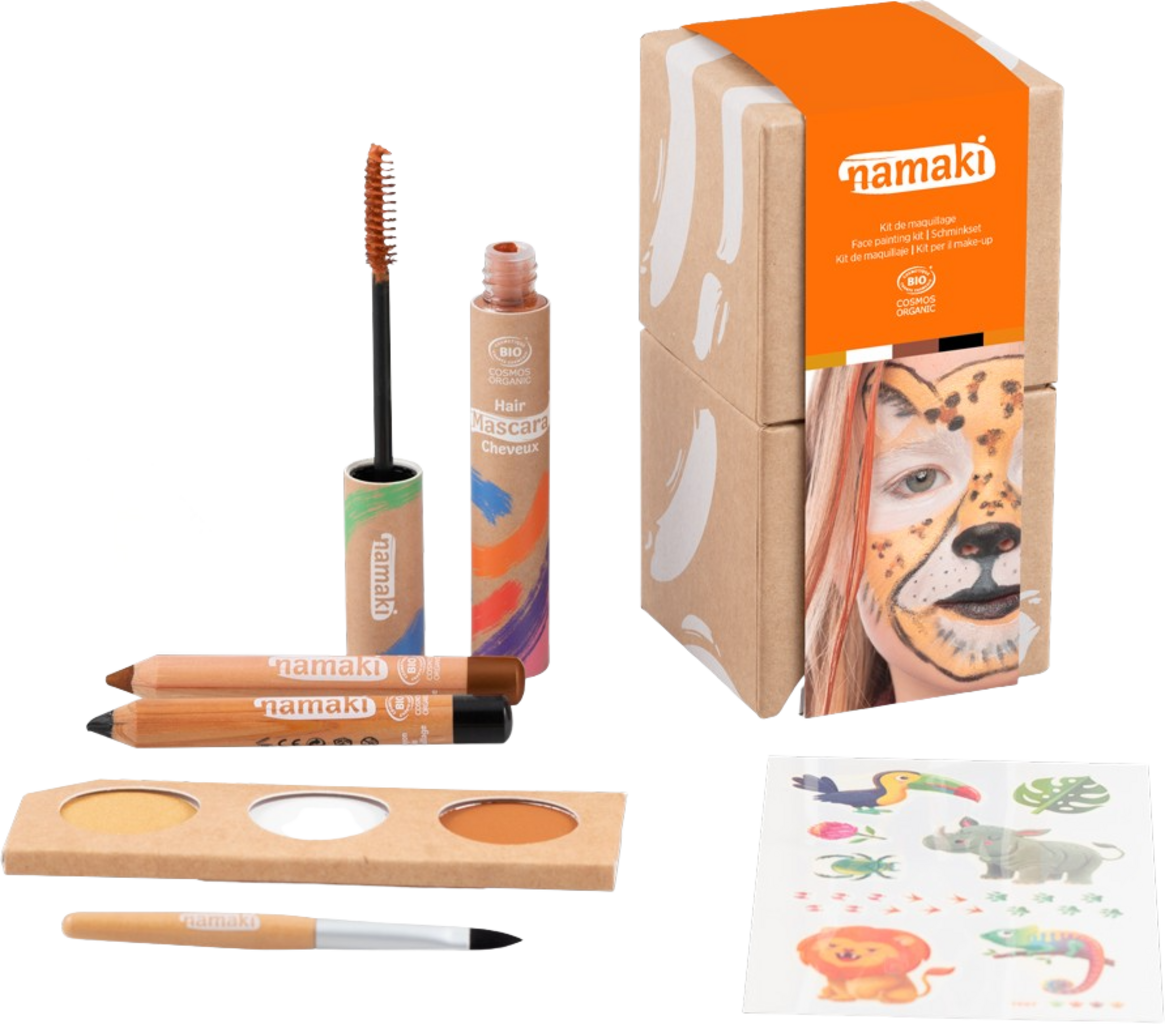 Dieses umfangreiche Schminkset lässt deine Kleinen in die Welt der wilden Tiere eintauchen! Drei Farben inklusive Pinsel, Stifte für Details und Farbe für die Haare sind enthalten. Alle sind zertifiziert und sicher für die Anwendung.