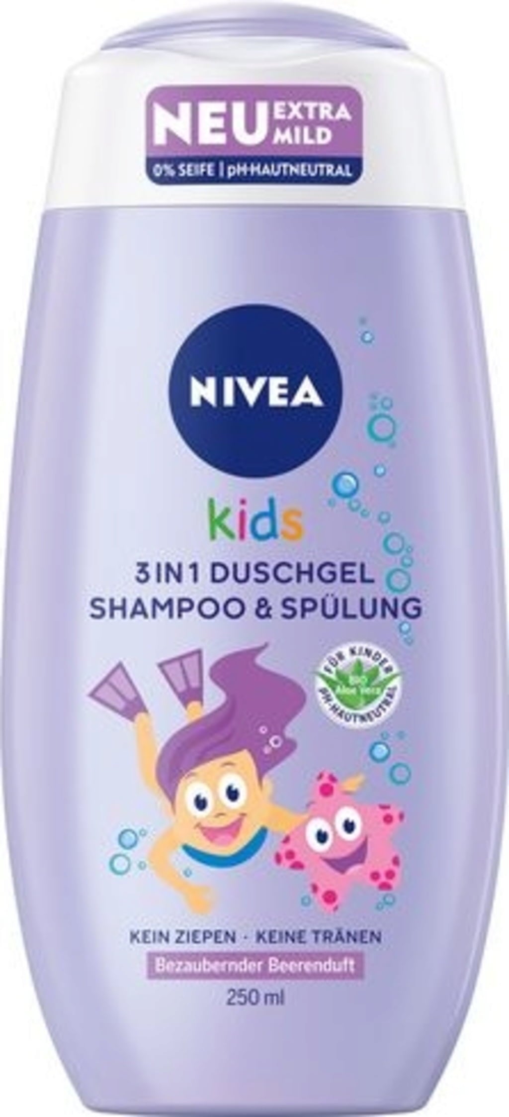 NIVEA Kids 3in1 Duschgel, Shampoo & Spülung Beerenduft, 250 ml