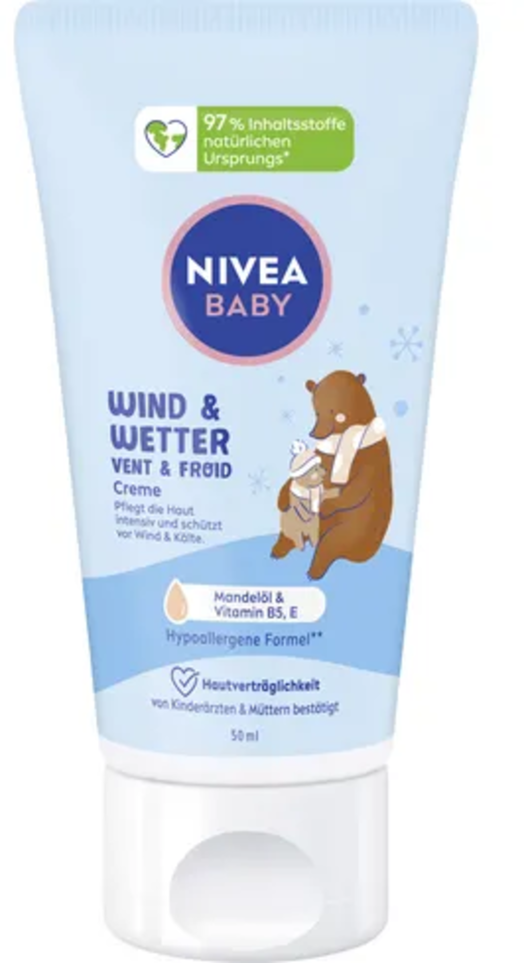Für Babys empfindliche Haut entwickelt, ist die Nivea Baby Wind & Wetter Creme ein Must-have, wenn die Kälte und windigen Tage wieder mehr werden. Die sanfte Formulierung mit natürlichem Mandelöl, pflegender Sheabutter und ausgewählten Vitaminen pflegt die Haut intensiv und schützt vor Wind und Kälte.