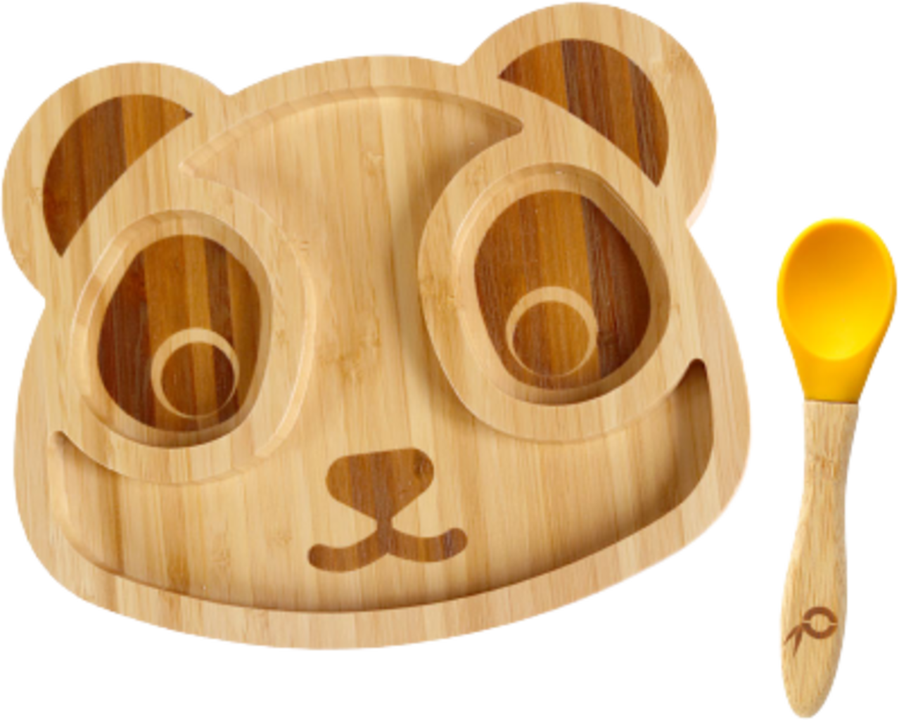 Das liebevoll gestaltete Set besteht aus einem Bambusteller in Form eines Pandagesichts und einer Bambusschüssel, die beide dank cleveren Untersätzen mit türkisem und gelbem Silikon sicher und rutschfest auf dem Tisch stehen.