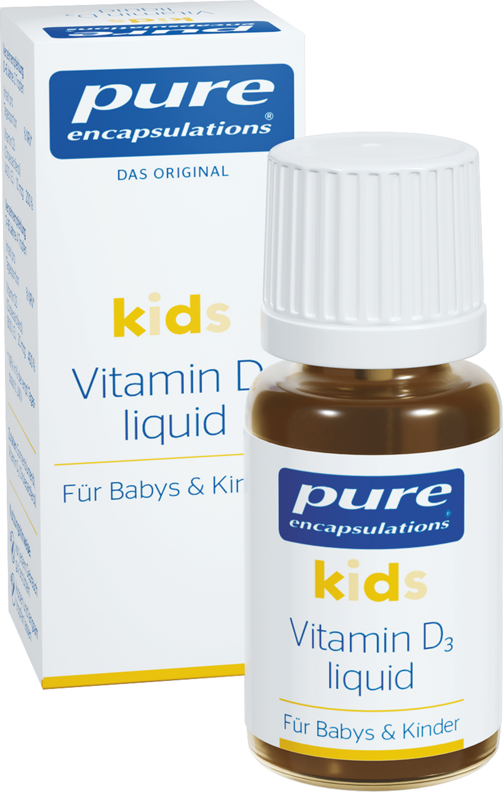 Pure Encapsulations® Kids Vitamin D3 liquid enthält Vitamin D auf natürlicher Sonnenblumenölbasis und ist speziell für Babys und Kinder entwickelt. Vitamin D trägt zu einem normalen Wachstum und zur normalen Entwicklung der Knochen, zur Erhaltung normaler Zähne und zur normalen Funktion des Immunsystems bei. Der praktische Tropfer ermöglicht eine einfache und flexible Dosierung – von Geburt an bis ins Jugendalter.