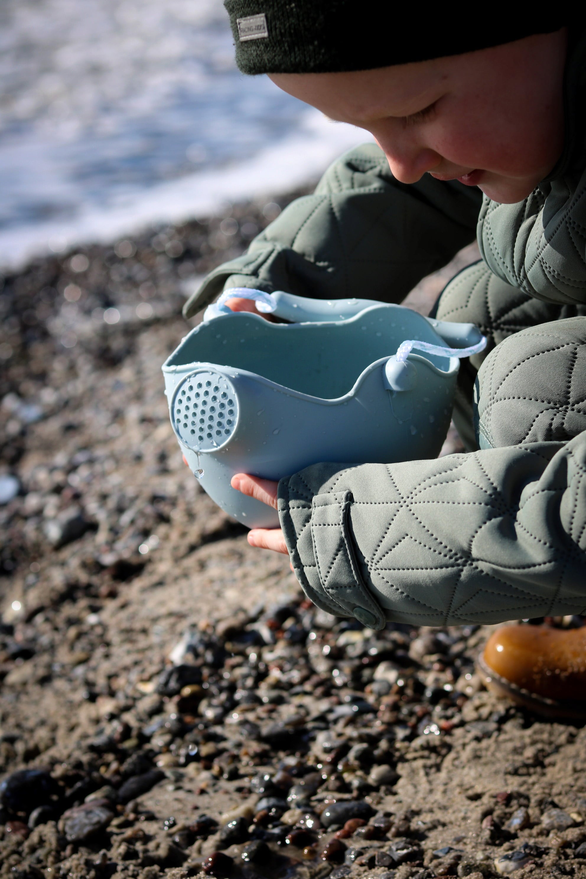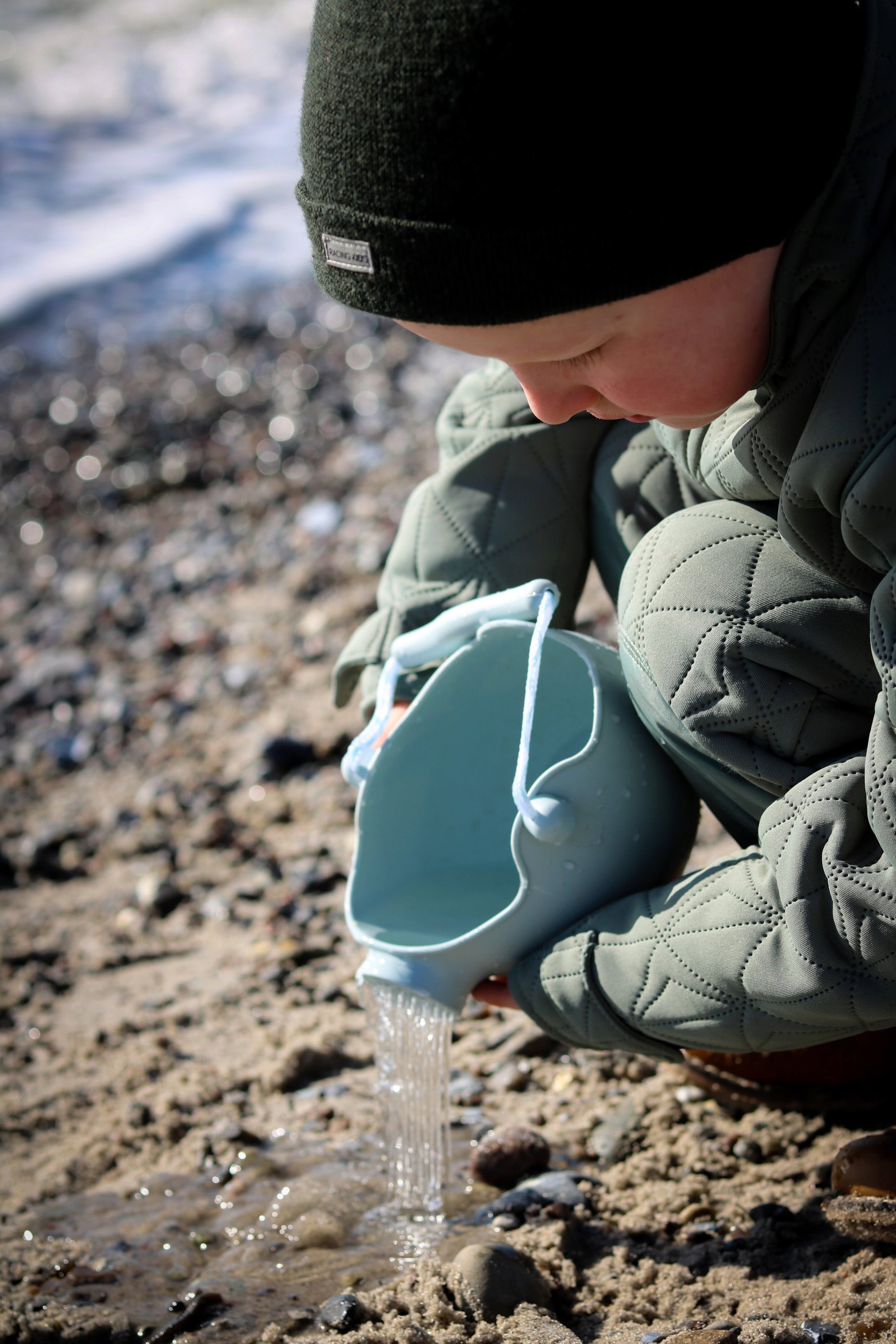 Mit dieser entzückenden Gießkanne können kleine Gärtner:innen ihre Lieblingspflanzen bewässern, Sand befördern oder auch in der Badewanne planschen. Dank des Silikons lässt sich die Gießkanne kompakt zusammenfalten, sodass sie in jedem Reisegepäck Platz findet. Da der Henkel an einem Seil an der Gießkanne befestigt ist, gleicht sich das Gewicht der Gießkanne beim Gehen aus, sodass nichts verschüttet wird.