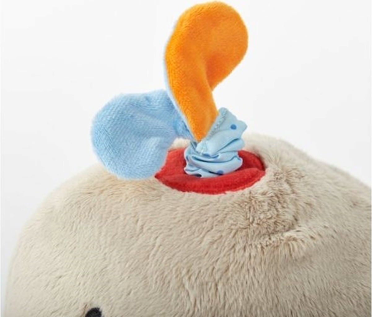 Wer kommt denn da angeschwommen? Es ist der freundliche Entdeckerspielzeug-Wal, der dich zum Spielen einlädt. Streichle die weichen Oberflächen, erkunde die spannenden Details und entlocke ihm lustige Geräusche.