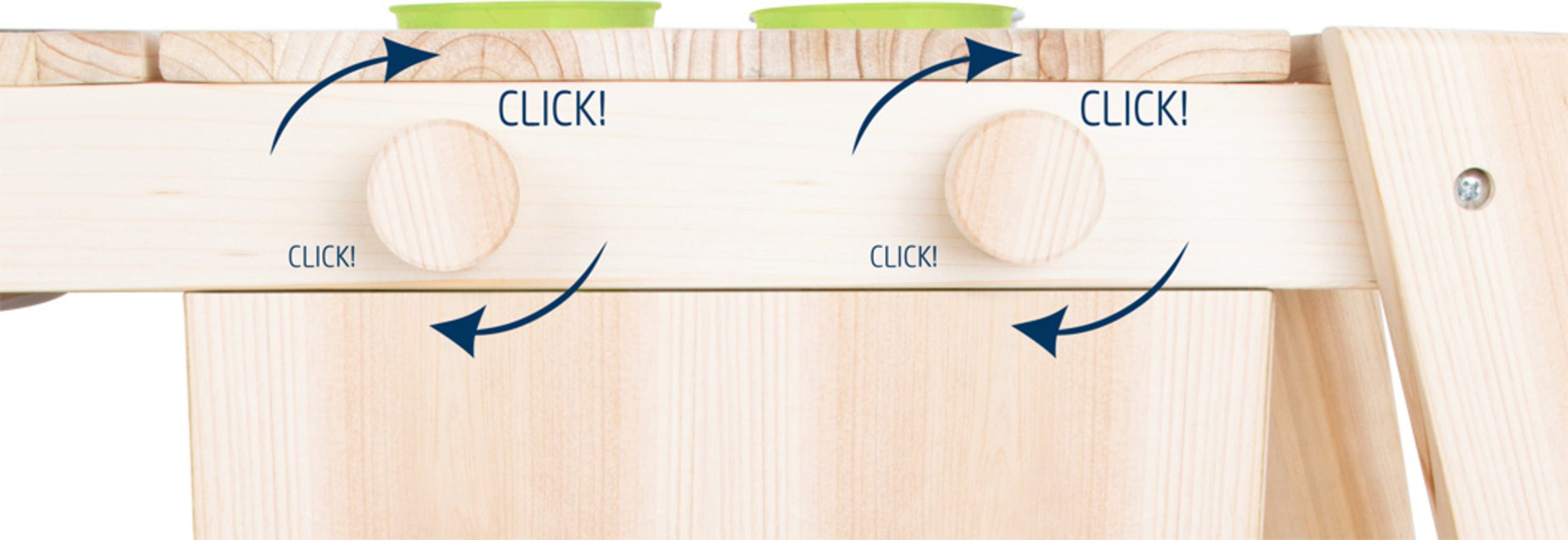 - Aussparungen und Löcher zum Verstauen von Gartenwerkzeug, Sandspielzeug und Küchenutensilien
