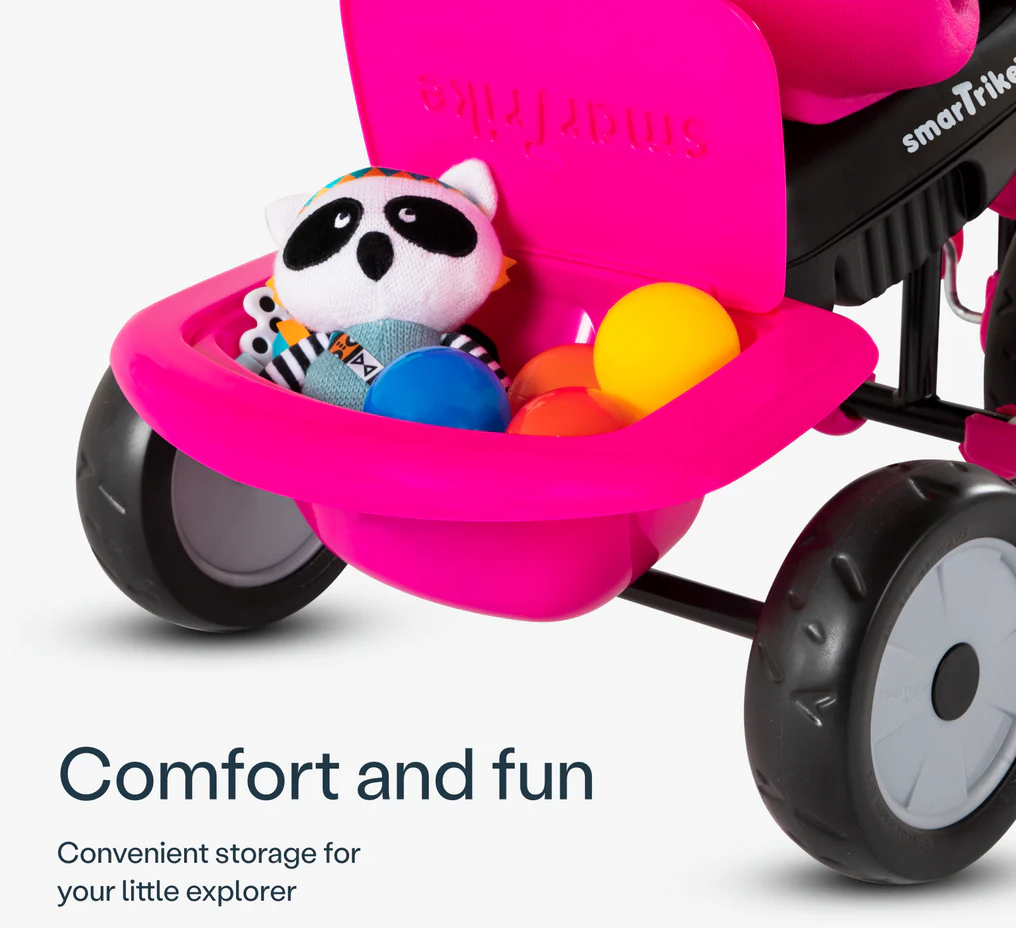 Besonders praktisch für Eltern und Kind ist die geräumige XL-Tasche am Heck: Hier findest du genug Platz für Spielzeug, Windeln oder kleine Einkäufe. Das verstellbare Sonnenschutz-Dach schützt zuverlässig vor direkter Strahlung. Mit dem Vanilla Plus förderst du die motorische Entwicklung und das Selbstvertrauen deines Kindes in vier aufeinanderfolgenden Stufen – vom geschobenen Fahrzeug bis hin zum ersten eigenen Treten der Pedale. Ein echtes Multitalent, das Stil und Sicherheit vereint.