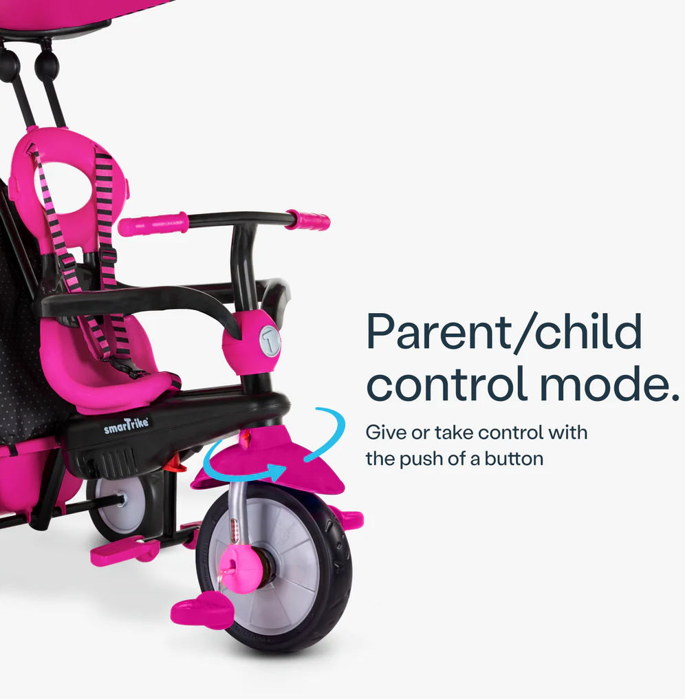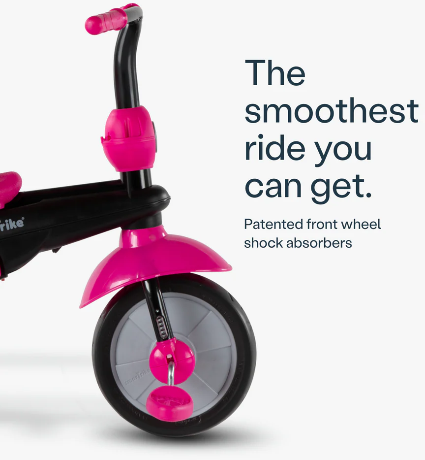 Suchst du nach einem Dreirad, das nicht nur gut aussieht, sondern auch deinen Alltag erleichtert? Das smarTrike Vanilla Plus ist das perfekte Stroller-Trike für modebewusste Eltern. Ab 15 Monaten bietet die hohe Rückenlehne deinem Kind optimalen Halt, während du dank der patentierten Touch Steering Technologie mühelos mit einer Hand manövrierst. Die integrierte Federung am Vorderrad fängt Stöße sanft ab, sodass dein Liebling die Fahrt in vollen Zügen genießen kann.