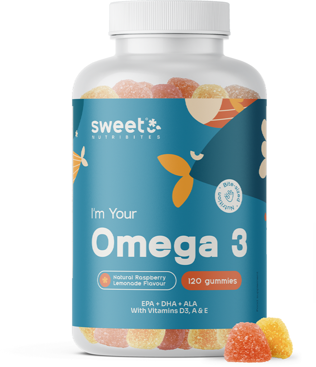 Die glutenfreien Omega-3 Gummies von Sweet Nutribites versorgen dich mit EPA, DHA und ALA aus qualitativ hochwertigem, gereinigtem Fischölkonzentrat. Zusätzlich sind die Gummibonbons mit den Vitaminen A, D3 und E angereichert. Das Vitamin E garantiert zusätzlich die Oxidation der Fettsäuren, wodurch die Qualität und Stabilität des Fischöls in den Gummies erhalten bleiben. Der angenehme Geschmack nach Himbeerlimonade sorgt zudem für ein fruchtiges Erlebnis während der Einnahme.