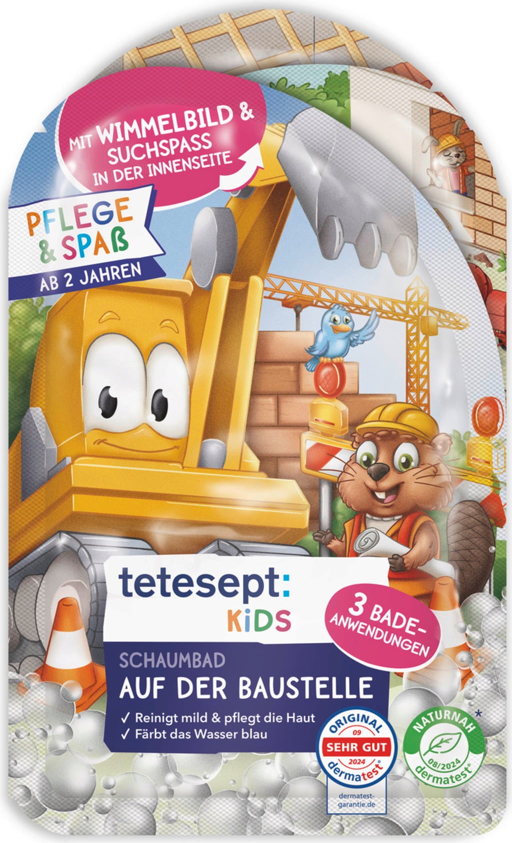 Das Kids Schaumbad Baustelle von tetesept sorgt für Spaß und Spannung in der Badewanne. Lebensmittelfarbe färbt das Wasser blau, während der fruchtige Duft die Sinne erfrischt. Aber keine Sorge: Haut, Haare und Badewanne werden dabei nicht gefärbt. Das Schaumbad ist für Kinder ab 2 Jahren geeignet und reicht für 3 Anwendungen.